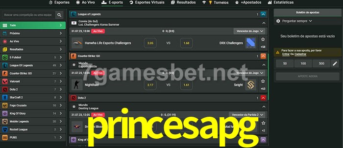 O princesapg oferece uma grande seleção de opções de apostas em e-sports com probabilidades competitivas